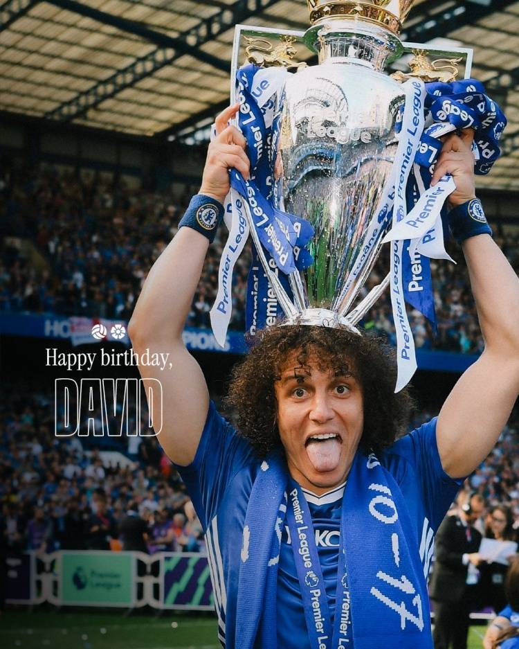 切尔西官方社媒晒出为大卫-路易斯制作的生日海报,配文:“38岁生日快乐,大卫-路易斯!”